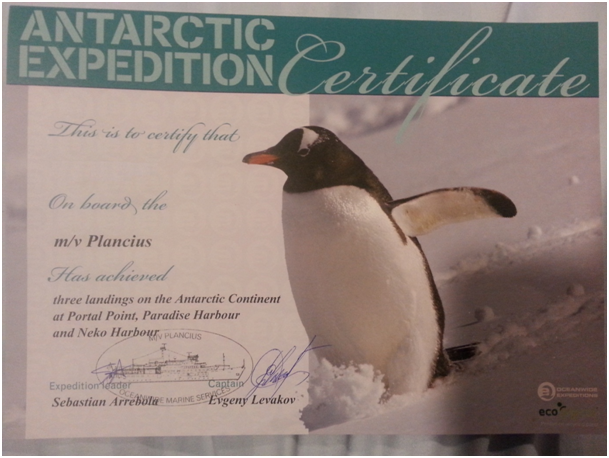 OUR CERTIFICATE SYMBOLISING ANTARCTIC EXPEDITION