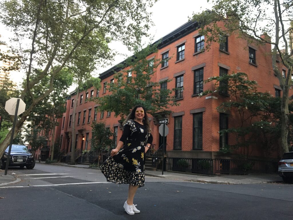 After crossing the bridge on foot, we want to see the famous “Brownstone Houses“. The feature of these houses is that they consist of attached houses made of red brown stone. We take lots of pictures here.
